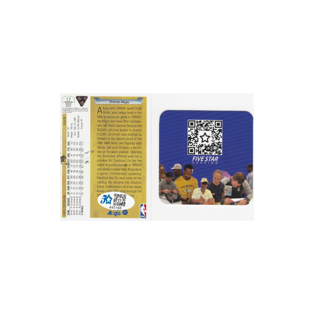 This is an authentic 1991-92 Upper Deck rookie card featuring the signature of John Corchiani, a notable player from that era. The card is a prized collectible for sports enthusiasts and fans of basketball memorabilia, showcasing not only Corchiani's early career but also the distinctive design and quality that Upper Deck is renowned for. The autograph adds a personal touch, enhancing its value and appeal to collectors who appreciate signed items. This card is in excellent condition, making it a perfect addition to any serious collection, whether for display or investment purposes. Its historical significance and the rarity of such items from the early '90s further elevate its desirability among avid collectors.
