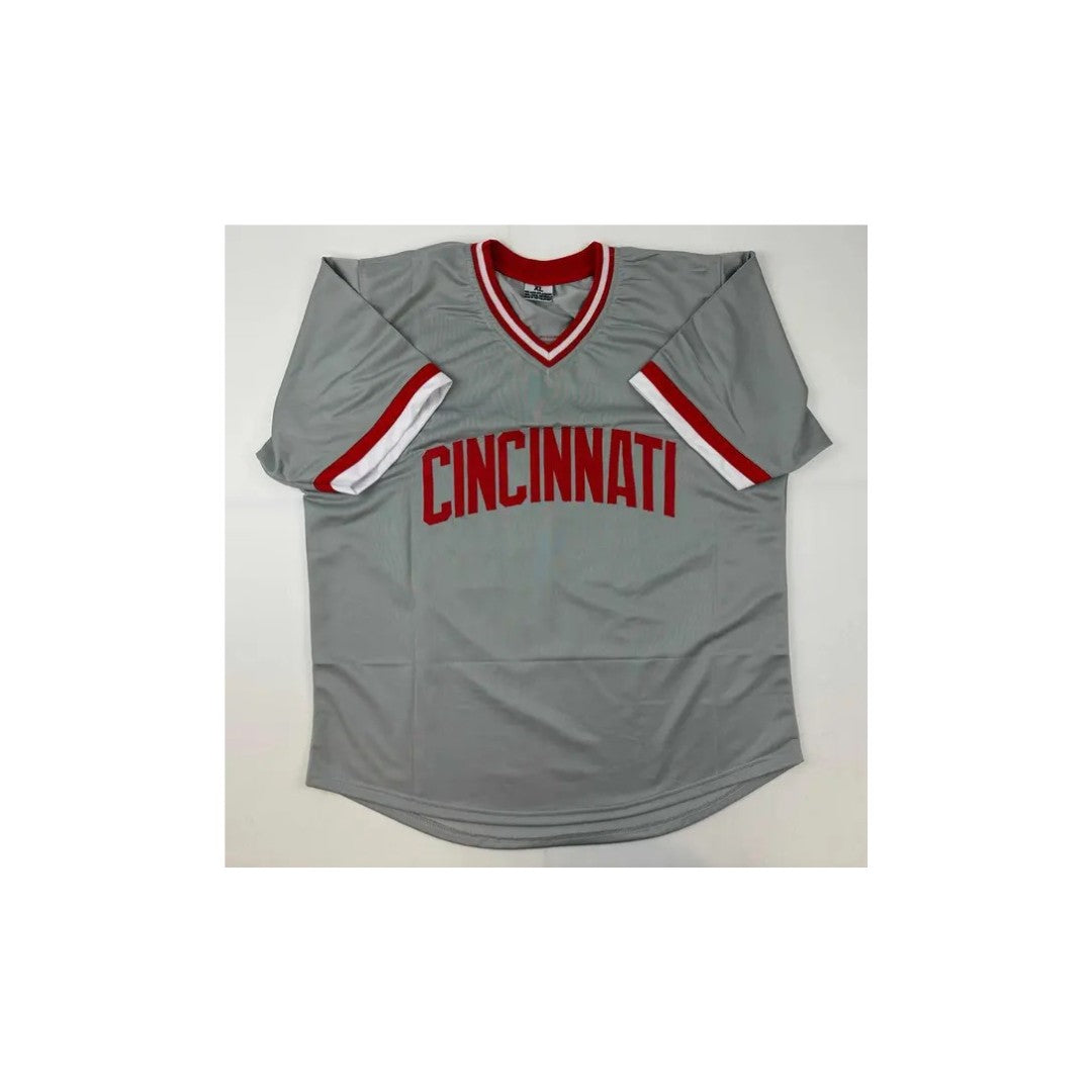 This is a remarkable autographed Cincinnati Baseball Jersey featuring the legendary Tony Perez, a celebrated figure in baseball history. The jersey comes with a Beckett Certificate of Authenticity, ensuring that the signature is genuine and adding significant value to this collectible item. Tony Perez, known for his impressive career with the Cincinnati Reds, played a pivotal role in the team's success during the 1970s, including their memorable World Series victories. The jersey itself is designed in the classic grey color associated with the Reds, showcasing the team's iconic logo and Perez's name and number. This piece is not just a piece of sports memorabilia; it represents a connection to a rich legacy in baseball, making it a must-have for any fan or collector looking to celebrate the sport's history.