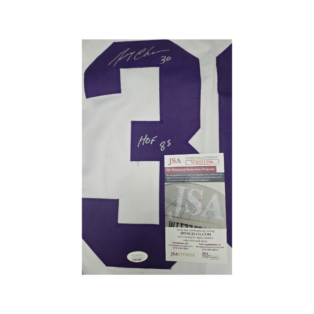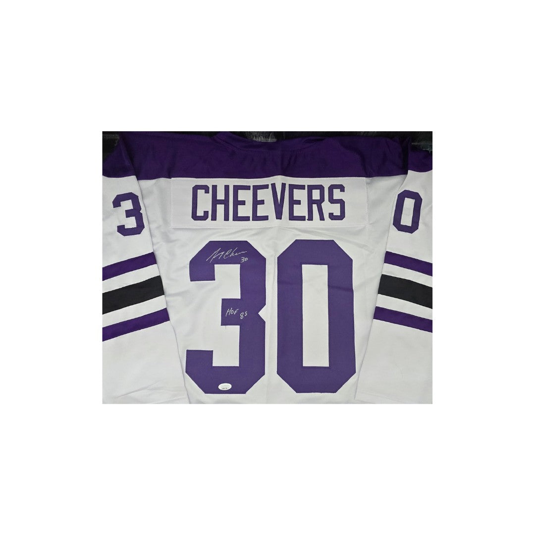 This Cleveland Crusaders hockey jersey, featuring the autograph of legendary goaltender Gerry Cheevers, is a must-have for any serious collector or fan of the sport. The jersey is not only a piece of memorabilia but also a tribute to Cheevers' remarkable career, known for his distinctive style and contributions to the game. It comes with a certificate of authenticity, ensuring that the signature is genuine and adding value to the item. The jersey itself is crafted with high-quality materials, showcasing the vibrant colors and design associated with the Cleveland Crusaders, making it a standout piece for display or wear. Whether you are looking to enhance your collection or gift it to a fellow hockey enthusiast, this autographed jersey is a unique and meaningful addition.