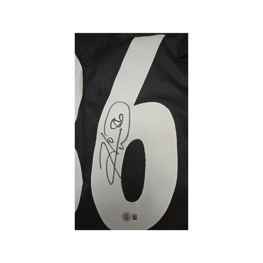 This is a remarkable Hines Ward autographed football jersey from his time with the Pittsburgh Steelers, complete with a Beckett hologram for authenticity. Hines Ward, a legendary wide receiver, is celebrated for his incredible contributions to the Steelers, including his pivotal role in their Super Bowl victories. The jersey itself is crafted from high-quality materials, ensuring both durability and comfort, making it a perfect addition to any fan's collection. The signature is prominently displayed, showcasing Ward's name in a bold, clear manner that adds a personal touch to this collectible item. Whether you're a die-hard Steelers fan or a memorabilia enthusiast, this jersey not only represents a piece of sports history but also serves as a tribute to one of the game's greats.