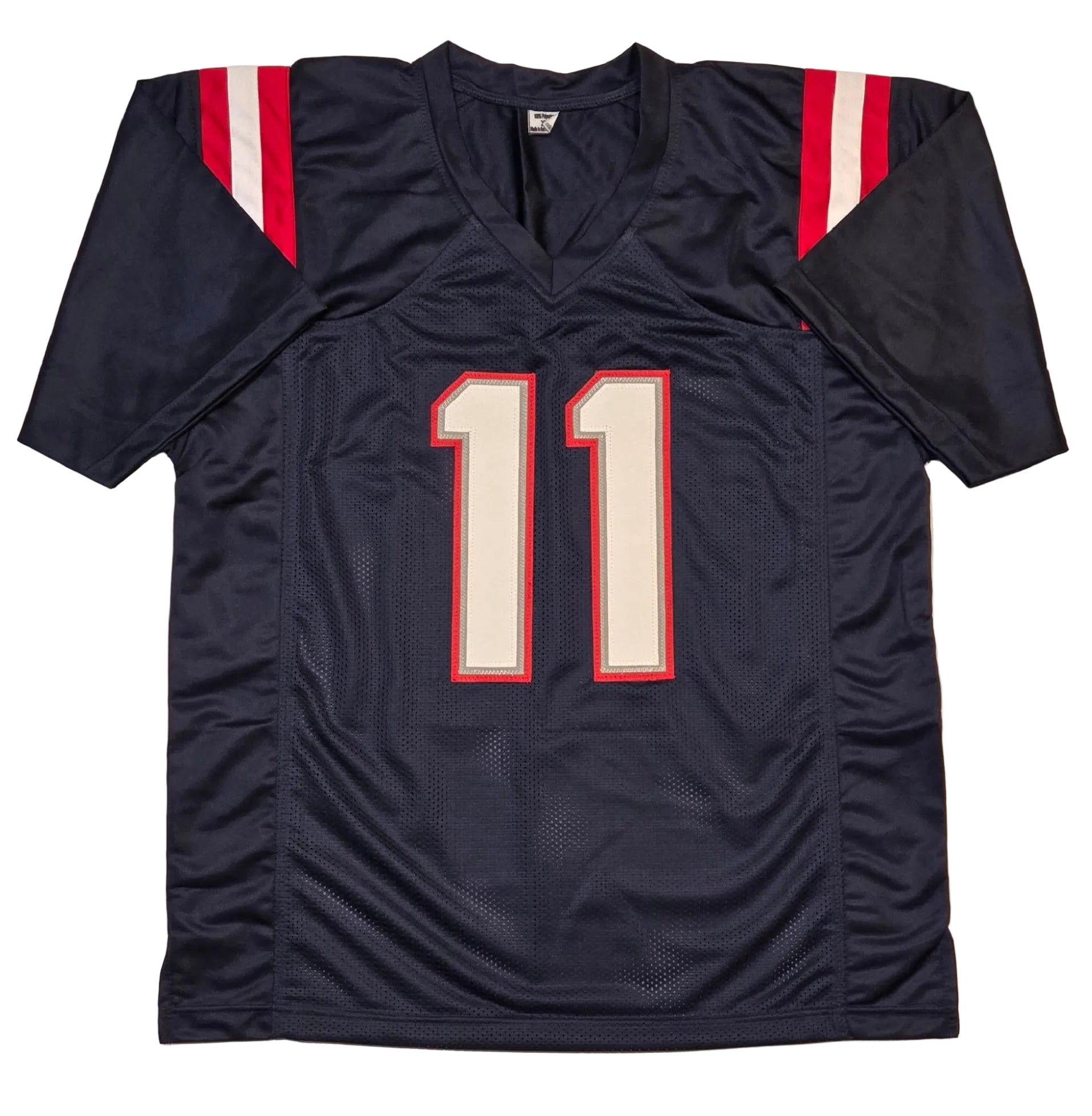 This is an incredible opportunity for fans of the New England Patriots and football enthusiasts alike: a Julian Edelman autographed football jersey, complete with a certificate of authenticity (COA). This jersey not only showcases Edelman's signature, a testament to his remarkable career as a wide receiver for the Patriots, but it also represents a piece of sports history. Known for his clutch performances in critical games, including Super Bowl victories, Edelman has become a beloved figure in the NFL. The jersey itself is crafted from high-quality materials, ensuring durability and comfort, making it perfect for display or wearing during game day. Whether you're looking to add to your sports memorabilia collection or searching for the perfect gift for a Patriots fan, this autographed jersey is a must-have item that captures the spirit of the game and the legacy of one of its standout players.