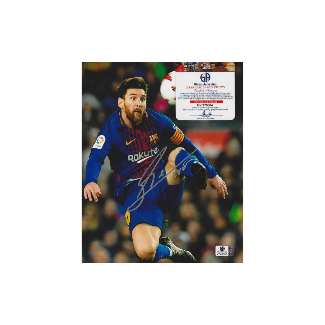 This is a remarkable 8x10 photograph of Lionel Messi, the legendary forward who made history during his time at FC Barcelona. The photo is not just a simple image; it has been personally autographed by Messi himself, adding a unique touch that makes it a prized possession for any fan or collector. Accompanying the photo is a certificate of authenticity (coa), which verifies that the signature is genuine, ensuring that you are getting a true piece of sports memorabilia. Whether displayed in a frame or kept in a collection, this autographed photo captures a moment in time from one of the greatest players in football history, making it a perfect gift for any admirer of the sport or a fantastic addition to your own collection.