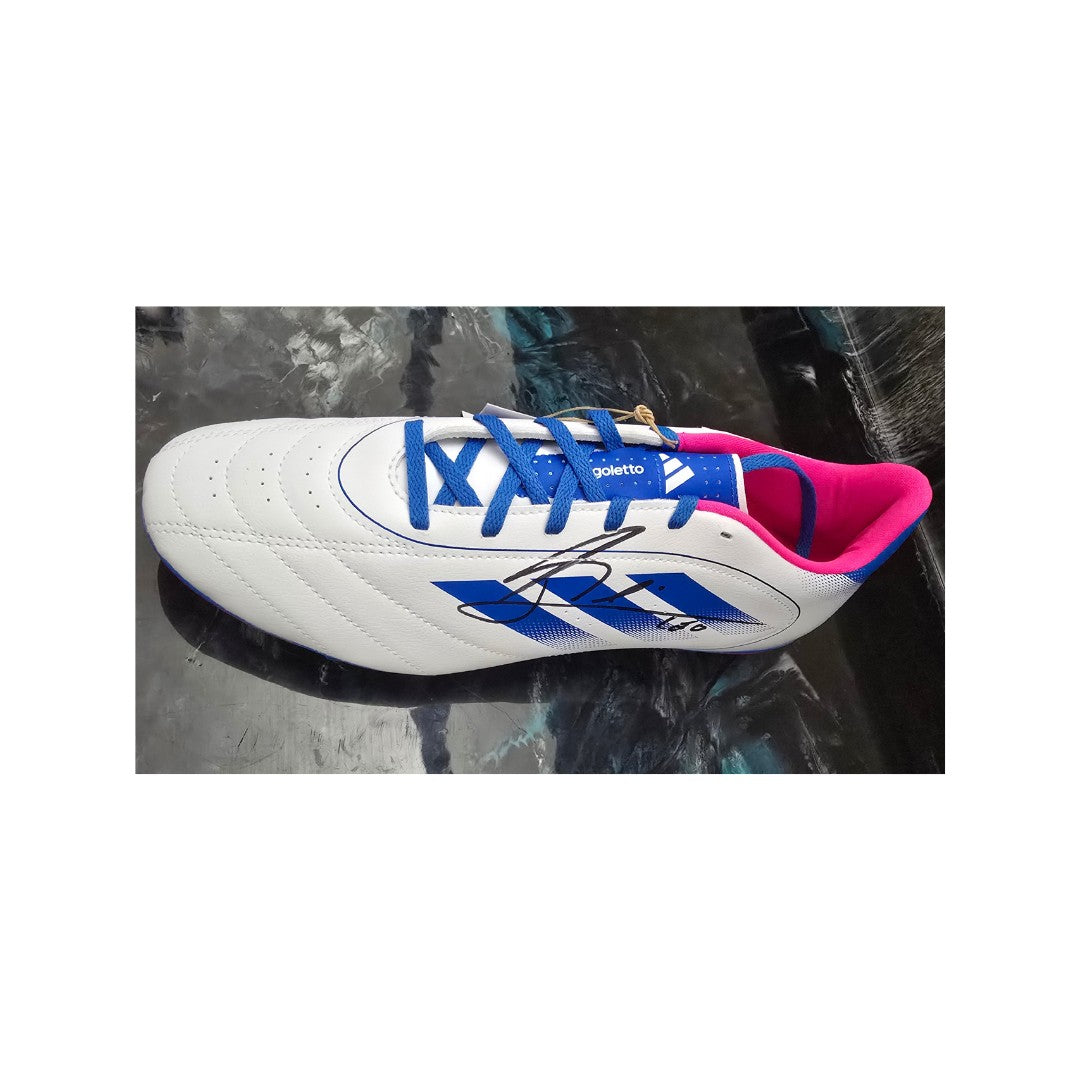 If you're a fan of soccer and a follower of Lionel Messi, then this autographed Adidas soccer cleat from his time with Inter Miami CF is a must-have for your collection. This unique piece of memorabilia not only showcases Messi's signature but also reflects his incredible journey in the world of soccer. The cleat is designed with the latest Adidas technology, ensuring both style and performance, making it a perfect representation of Messi's skill on the field. Whether you plan to display it proudly in your home or add it to your sports memorabilia collection, this signed cleat is a fantastic way to celebrate the legacy of one of the greatest players in the history of the sport. Plus, it comes with a certificate of authenticity, guaranteeing that you’re getting a genuine piece of soccer history.