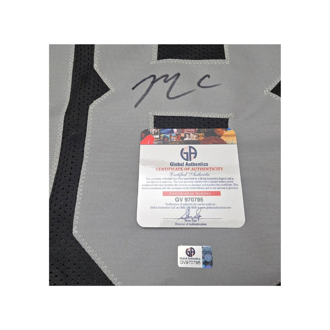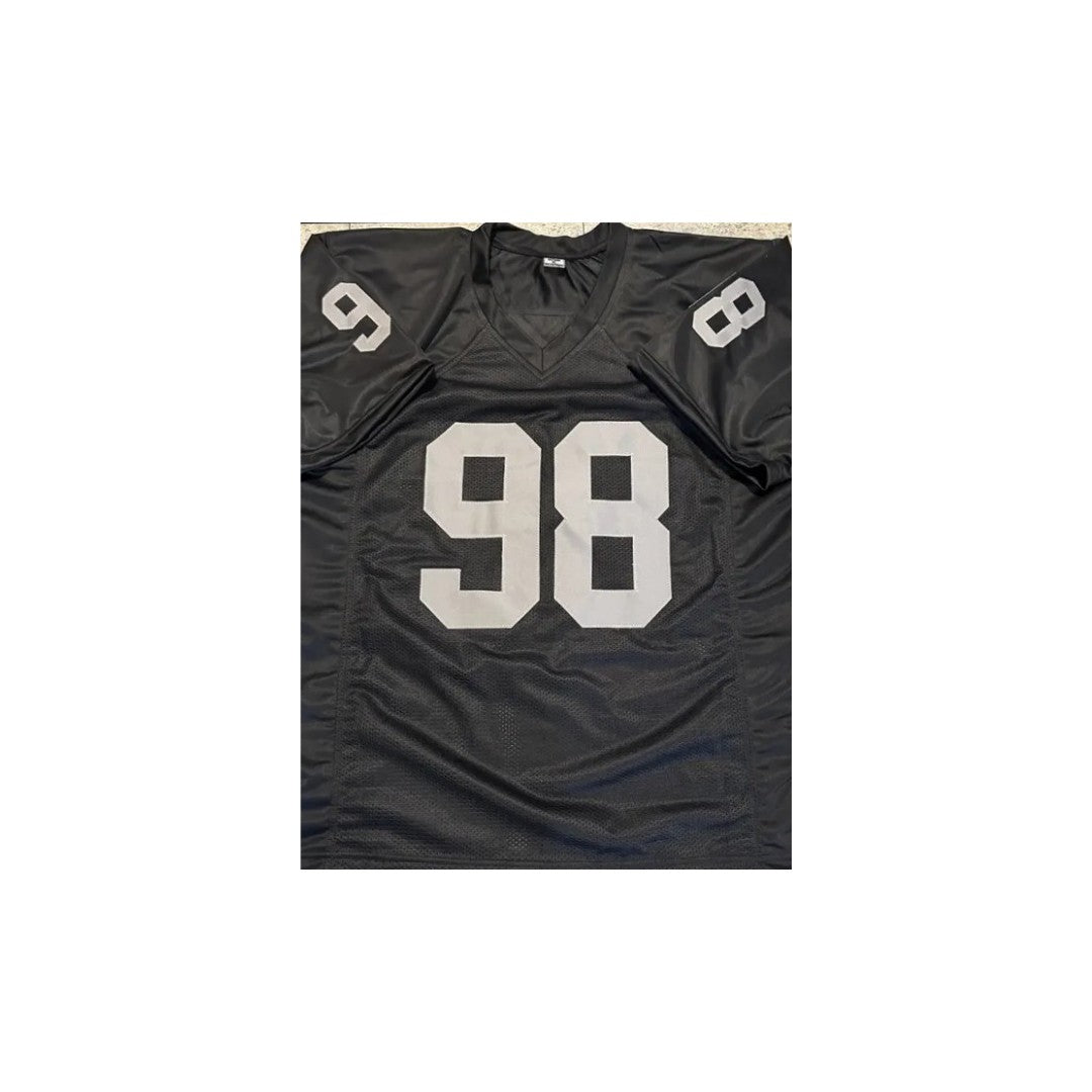 This is a remarkable Las Vegas Raiders football jersey that has been personally autographed by Maxx Crosby, a standout player known for his impressive skills on the field. The jersey comes with a certificate of authenticity, ensuring that the signature is genuine and adding value to this collectible item. Crafted with high-quality materials, the jersey features the iconic Raiders colors and design, making it a perfect addition for any fan or collector. Whether you plan to display it in a prominent place or wear it to show your support during game day, this autographed jersey is a fantastic way to celebrate your admiration for Maxx Crosby and the Raiders.