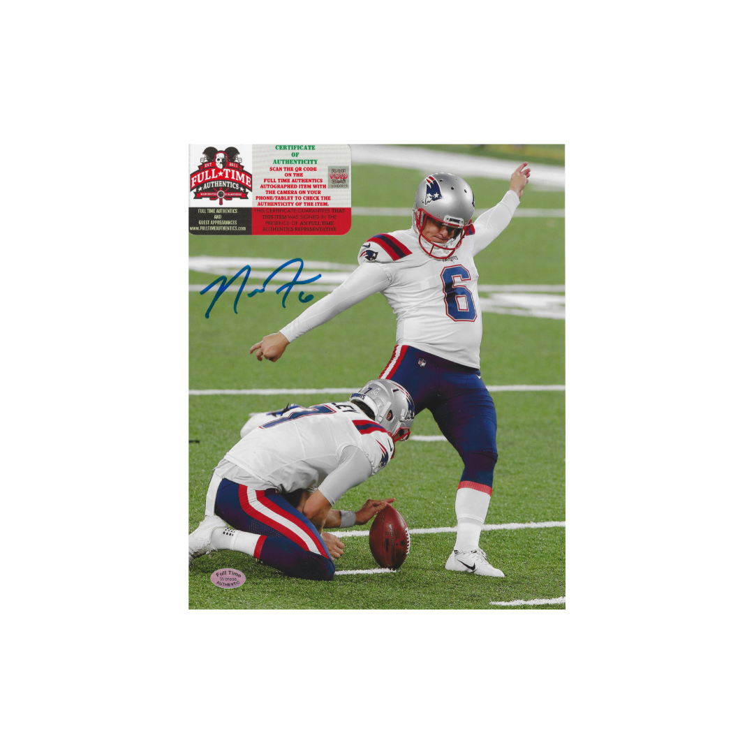 This is an autographed 8x10 photo of Nick Folk, the talented kicker for the New England Patriots, complete with a certificate of authenticity (COA) to ensure its legitimacy. The photograph captures Folk in action, showcasing his impressive kicking technique and determination on the field. As a key player for the Patriots, his contributions have been vital to the team's success, making this signed photo a valuable piece for any fan or collector. The COA adds an extra layer of assurance, confirming that this signature is genuine, which is especially important for those looking to invest in sports memorabilia. Whether displayed in a frame or kept in a collection, this autographed photo is a fantastic way to celebrate Nick Folk's career and his impact on the game.