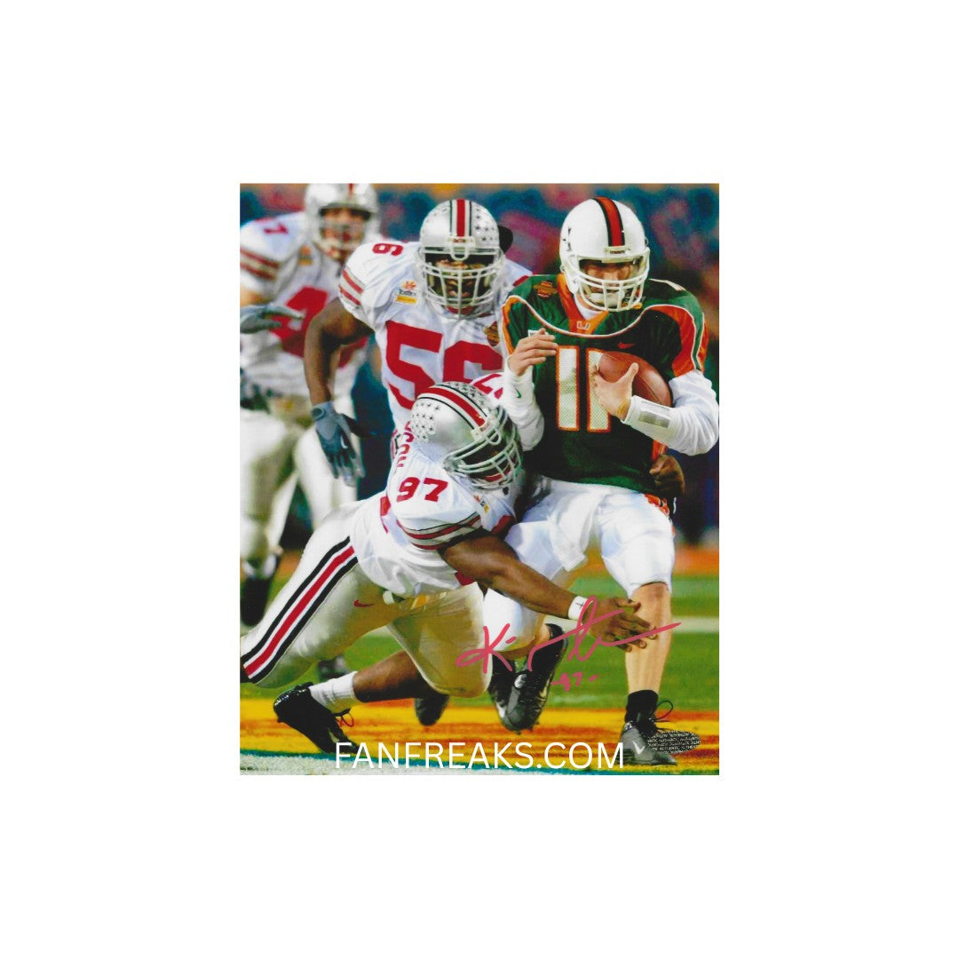 This is an 8x10 reprint photo of Kenny Peterson, a celebrated player from the Ohio State Buckeyes, complete with his autograph. It's a fantastic piece for any fan or collector looking to commemorate his contributions to the team.