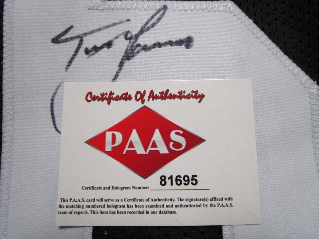 This exquisite piece of memorabilia features a Jacksonville Jaguars jersey that has been personally autographed by the talented quarterback Trevor Lawrence. The jersey showcases the team's iconic colors and design, making it a standout item for any fan or collector. The signature is prominently displayed, adding a unique touch that enhances its value and appeal. Accompanied by a certificate of authenticity, this jersey not only represents a significant moment in sports history but also serves as a testament to Lawrence's rising star in the NFL. Whether displayed in a personal collection or gifted to a devoted fan, this autographed jersey is a remarkable tribute to one of football's most promising athletes.